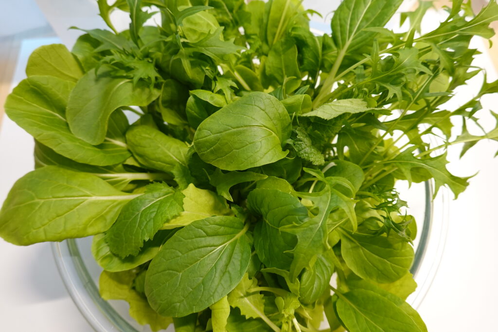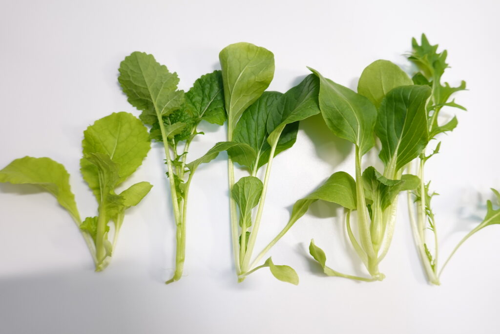 品種は小松菜、水菜、チンゲンサイ、からし菜など。パッケージ記載の8種類のうち、残りの3種の品種が気になりますね。