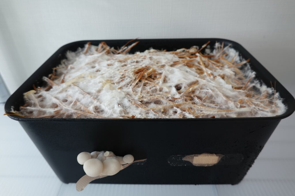 ここからは、キノコが発生した「稲わら培地」の成長過程を紹介していきます。