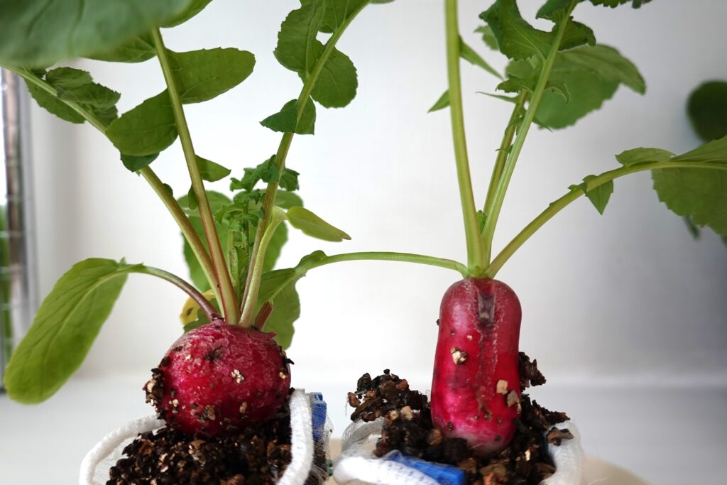 特にラディッシュは、葉だけでなく根の部分がふくらんでいく様子が見えるので、育てていて変化を感じやすい野菜です。