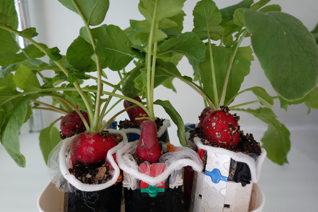 左がラディッシュ、右がミニ大根です。しっかり育ちました。