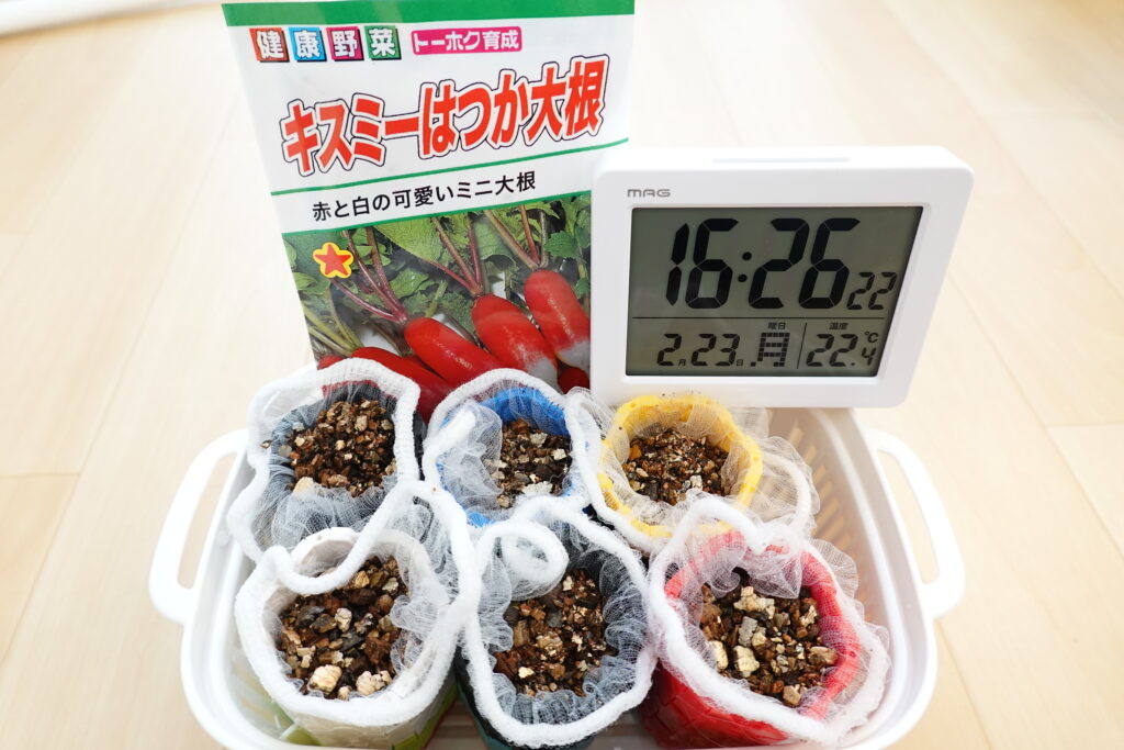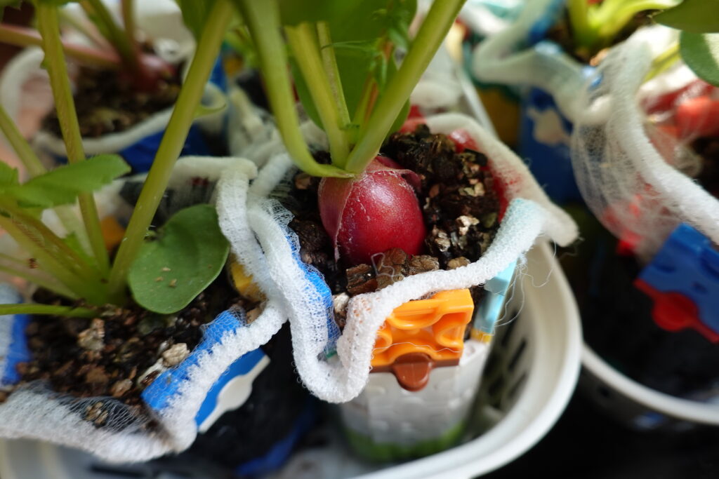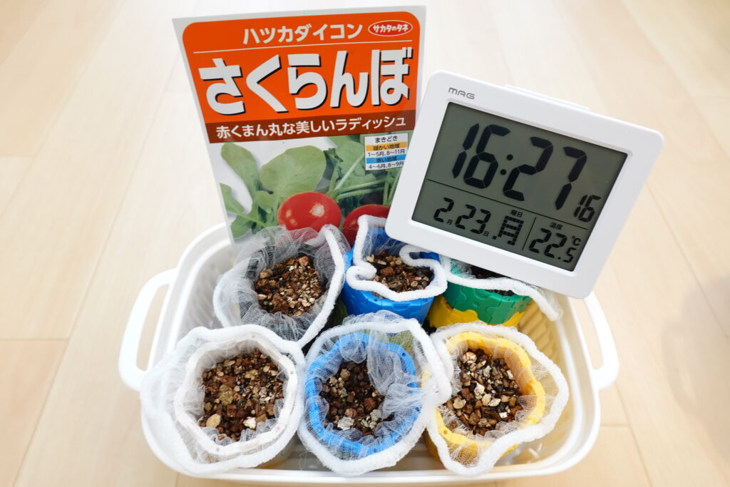 今回は、育てやすくて成長も早いラディッシュ(はつか大根)を、この自作容器で育ててみることにしました。