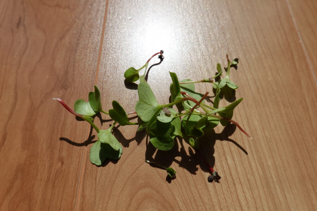 このタイミングで間引きを行い、微粉ハイポネックス1000倍希釈の管理に切り替えました。間引きしたものはサラダに混ぜておいしくいただきました。
