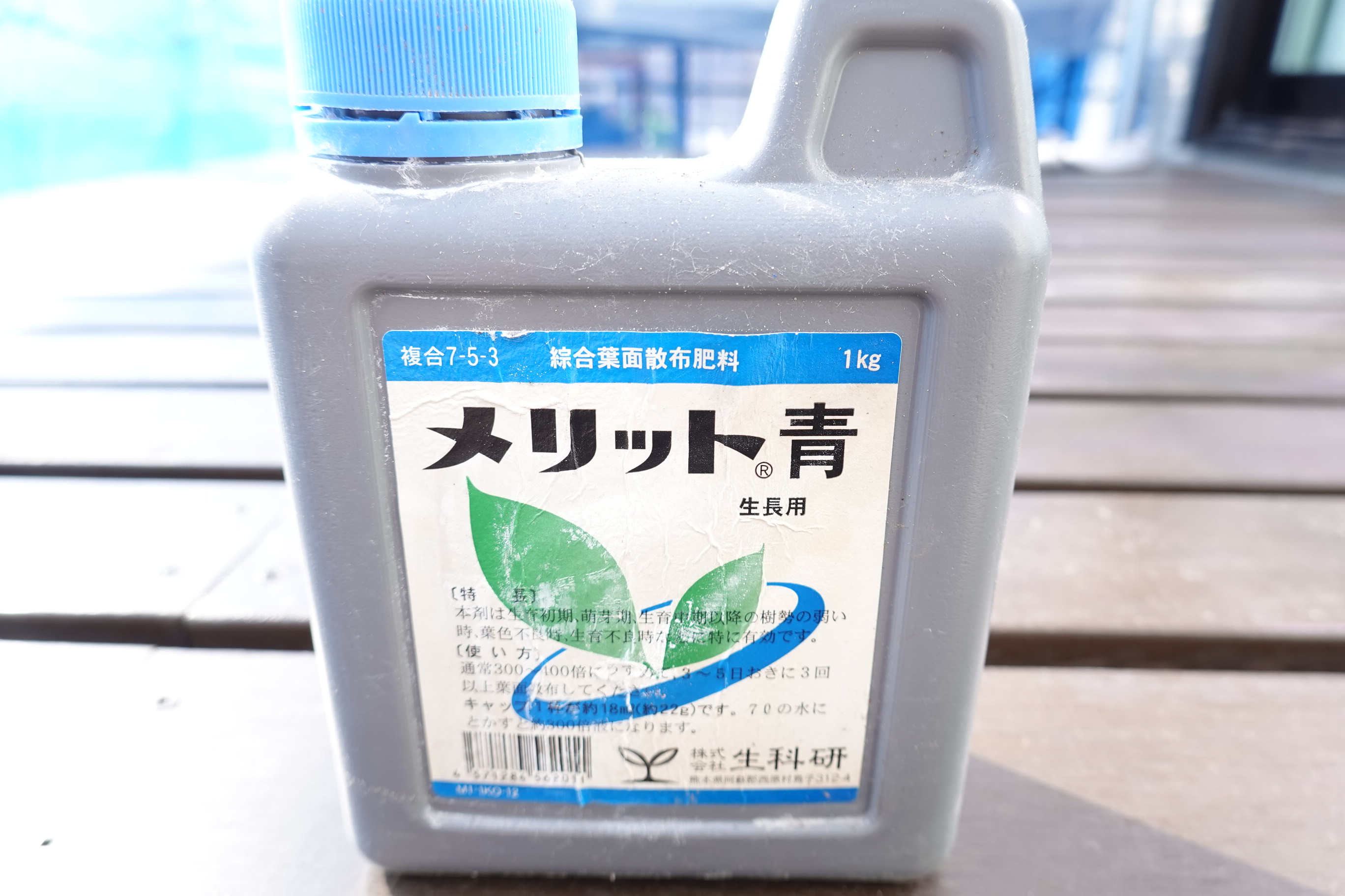メリット青1kgは家庭菜園では1回で使い切れないと思いますので、使用後は容器を立てて冷暗所で保管しましょう。容器を横にすると液漏れの原因になるため注意が必要です。