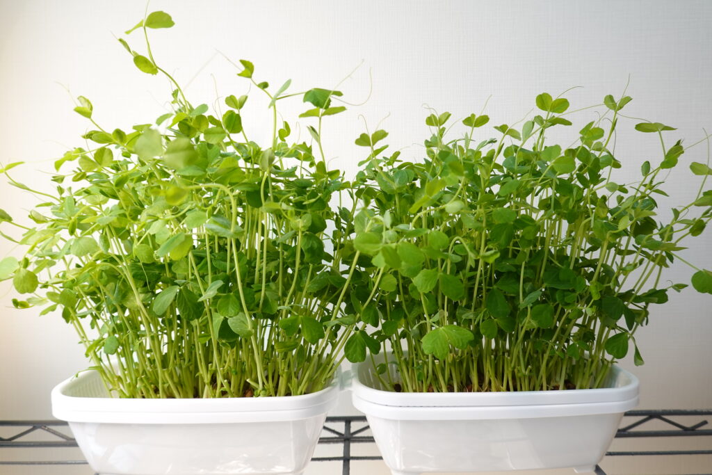 豆苗はえんどう豆の新芽で、緑黄色野菜のひとつです。シャキシャキとした食感とクセの少ない味が特徴で、炒め物やスープ、サラダなど幅広い料理に使えます。ビタミンや食物繊維も豊富で、手軽に栄養を摂れる点も魅力です。また、水だけで再生できるため、節約志向の方や家庭菜園初心者からも人気を集めています。