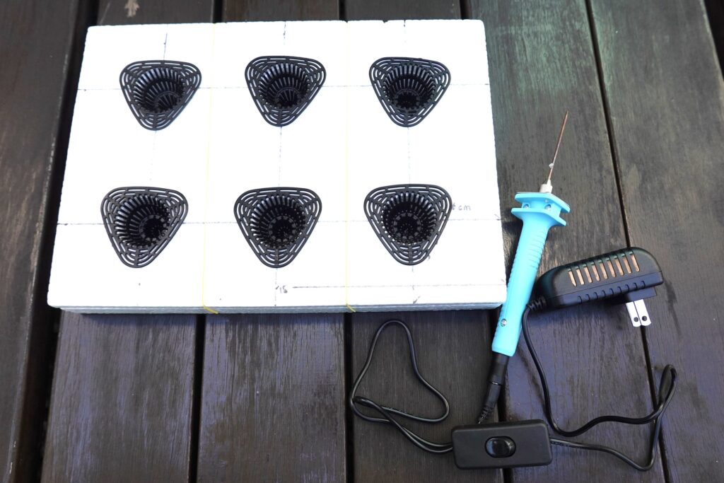 ① 発泡スチロールへの位置決め