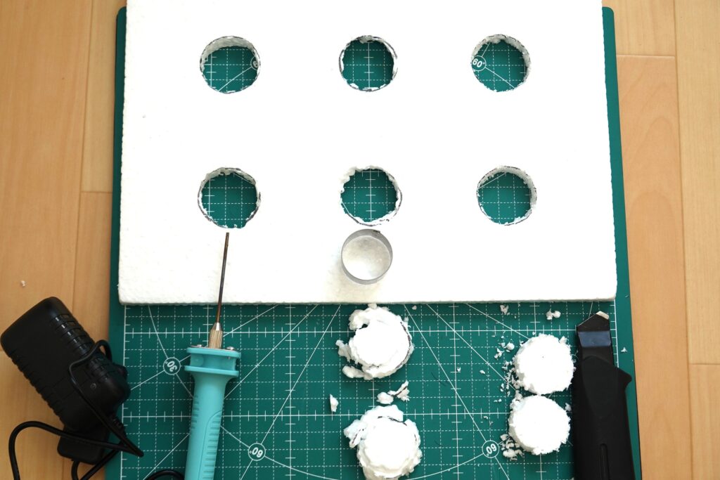 ② 発泡スチロールの穴あけ